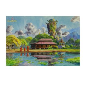 Offering alms to monks of village culture – Artwork by Saw Tint Wai