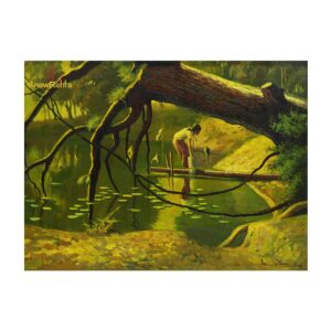 Picking water from the pond – Artwork by Thet Nyunt