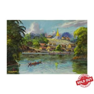 The vilage pagoda and small river boat – Artwork by Saw Tint Wai