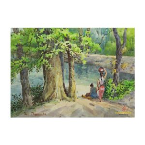Drawing the water from the jungle lake – Artwork by Thet Nyunt