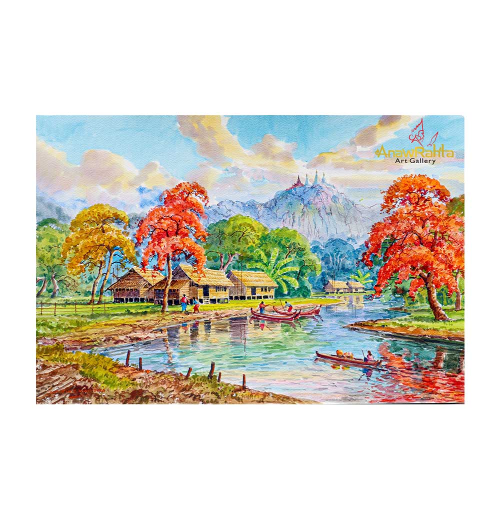Title : A Creek Boat and a Hut 3 – ချောင်းလှေနှင့် တဲ ၃