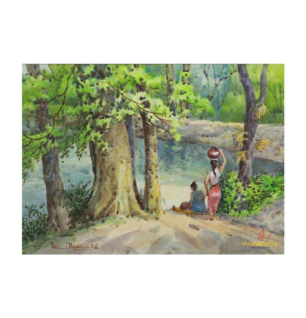 Title : Drawing the water from the jungle lake – တောတွင်းရေကန် ရေခပ်ဆင်း