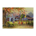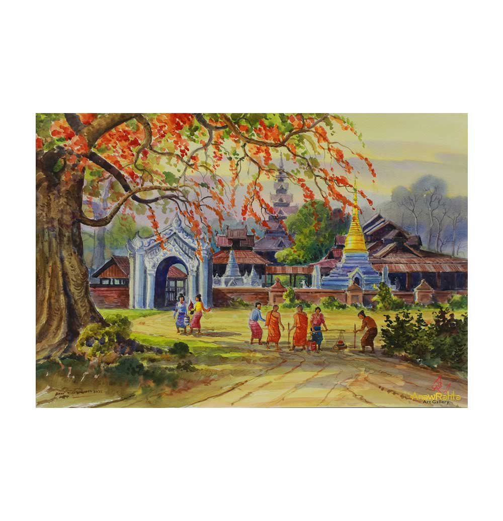 Offering alms to monks of village culture – Artwork by Saw Tint Wai