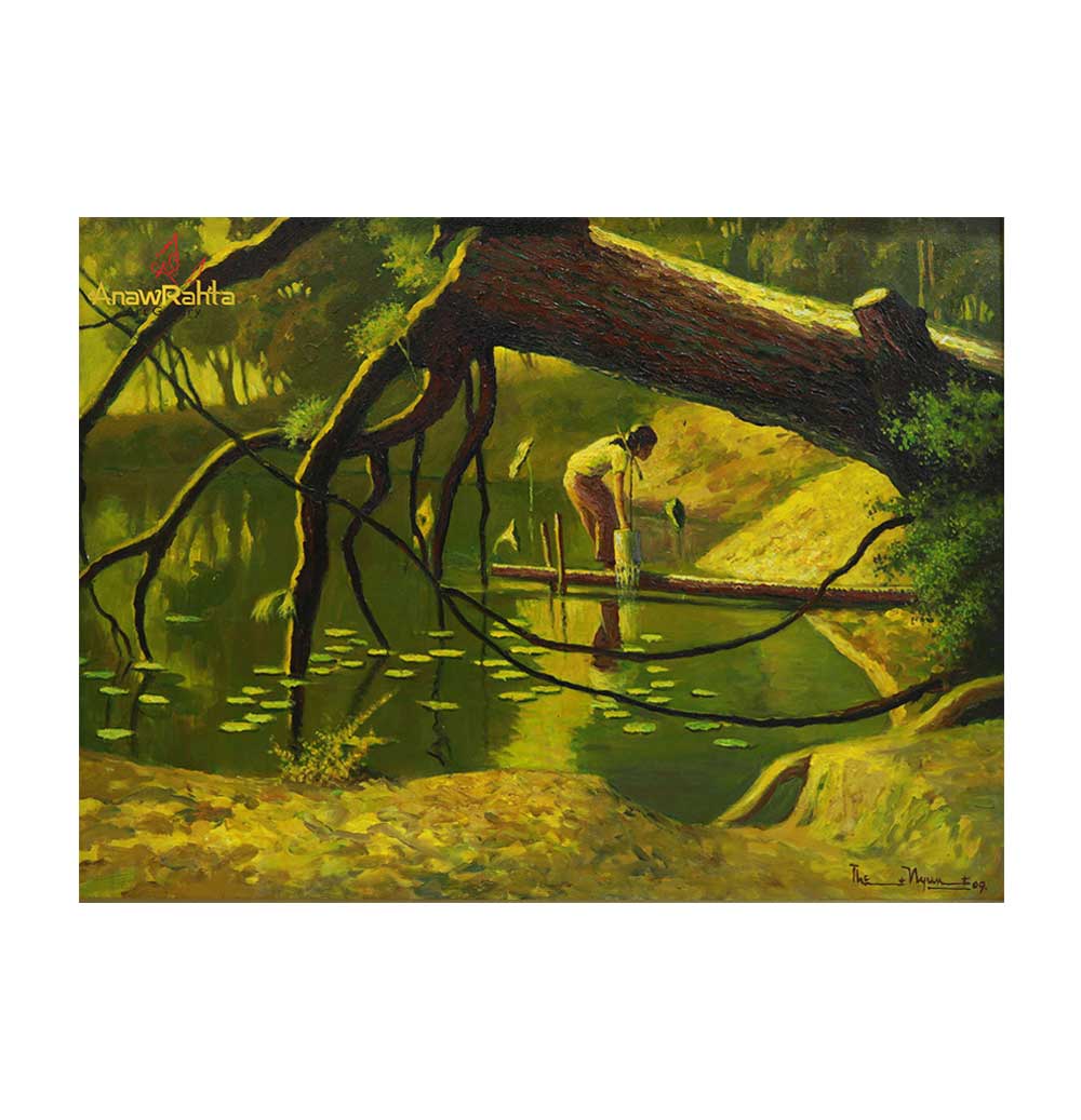 Title : Picking water from the pond – ကန်ရေခပ်ဆင်း