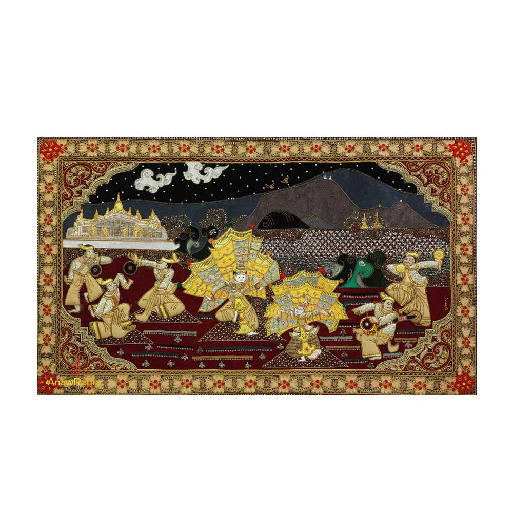 Title : Shan Tranditional Dance (Gold Embroidery) – ရှမ်းရိုးရာအက (ရွှေချည်ထိုး)
