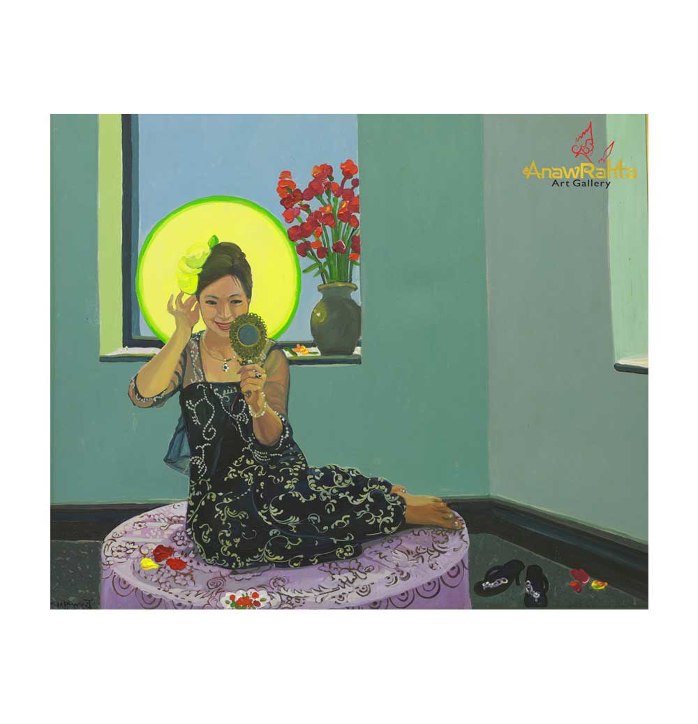 Title : The shadow which appears in the mirror - ကြေးမုံ မှန်ပြင်ထင်သော အရိပ်နု